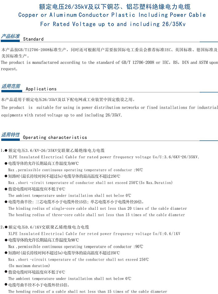額定電壓0.6/1kv交聯聚氯乙烯絕緣電力電纜