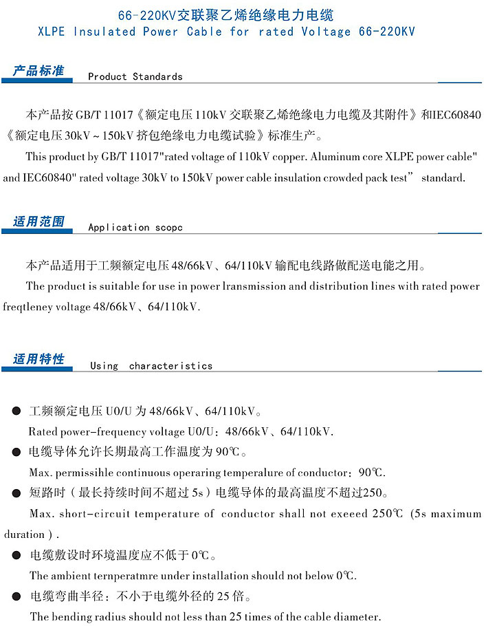 | 66-220kv交聯(lián)聚乙烯絕緣電纜電纜 | |